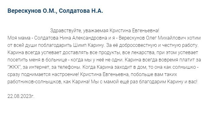 Прошла обучение по программе "Системы долговременного ухода за гражданами пожилого возраста и инвалидами, признанными нуждающимися в социальном обслуживании". Полученные знания подтвердила на практике в 2022 году в отделение паллиативной помощи городской больнице N5 города Челябинска